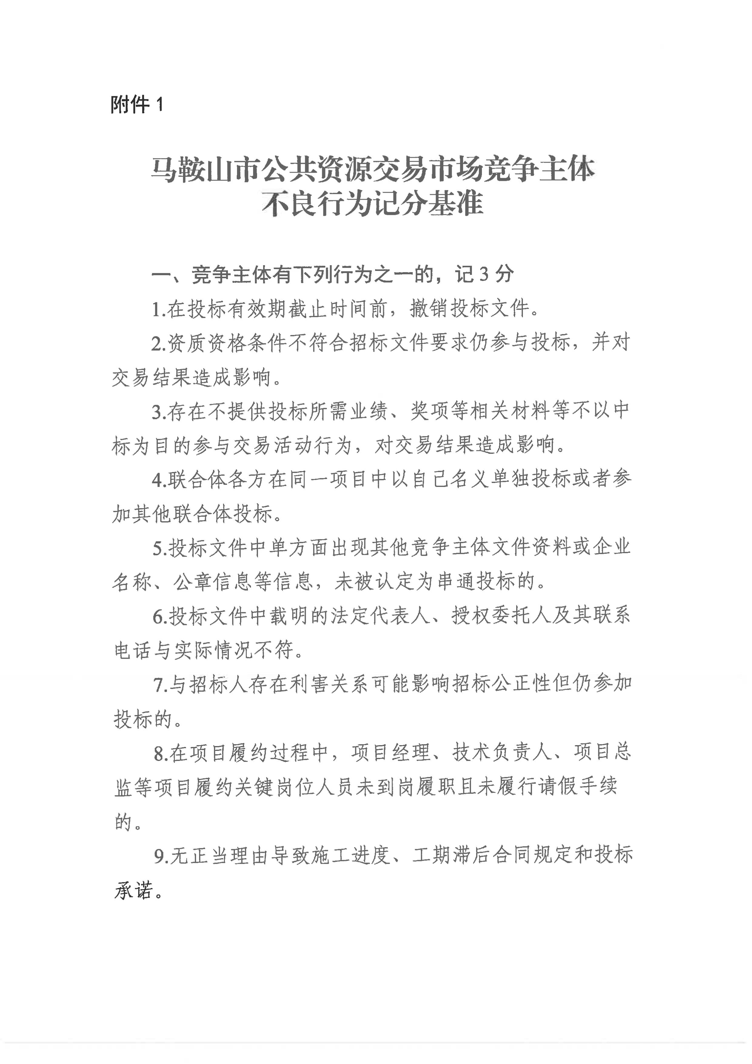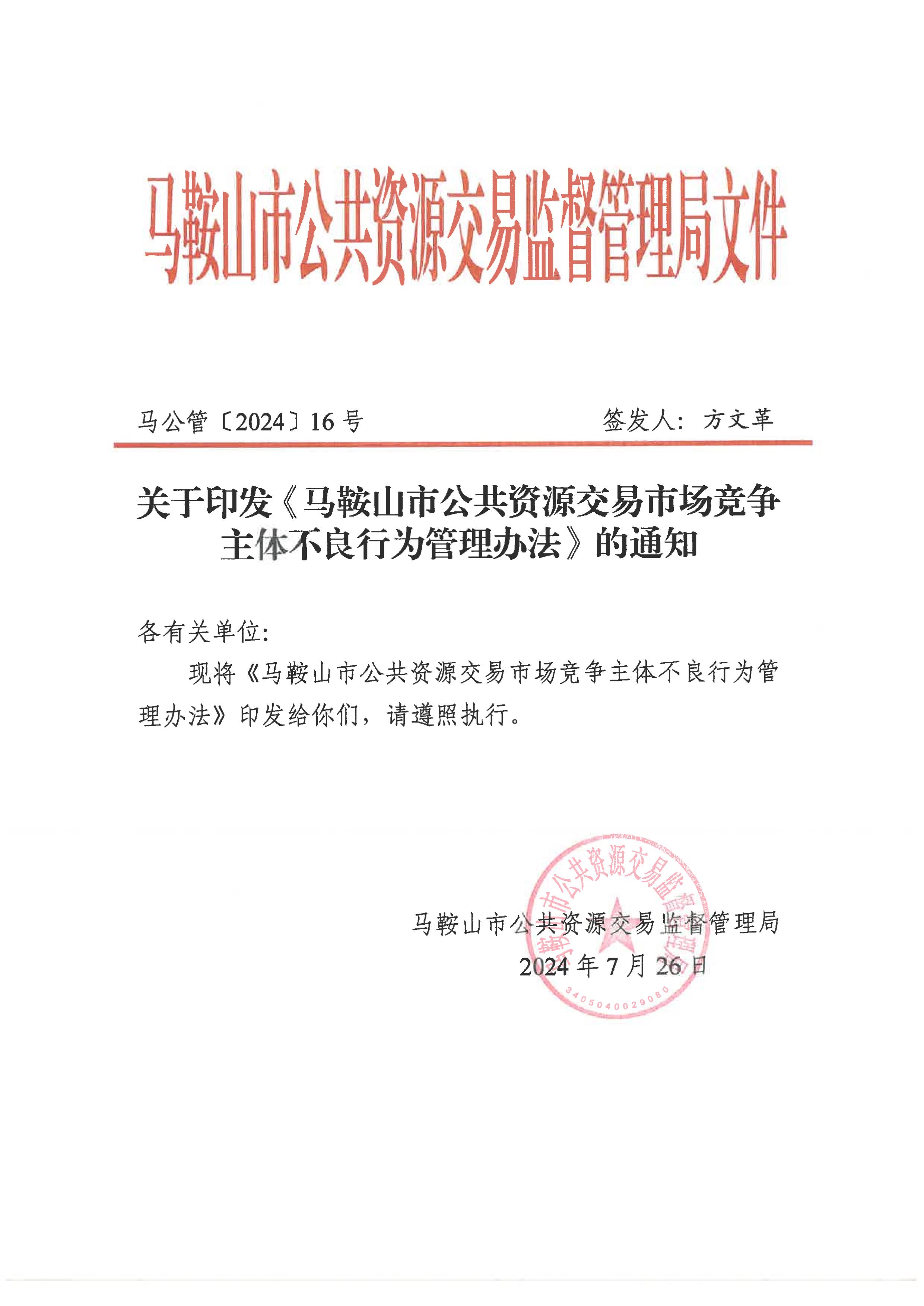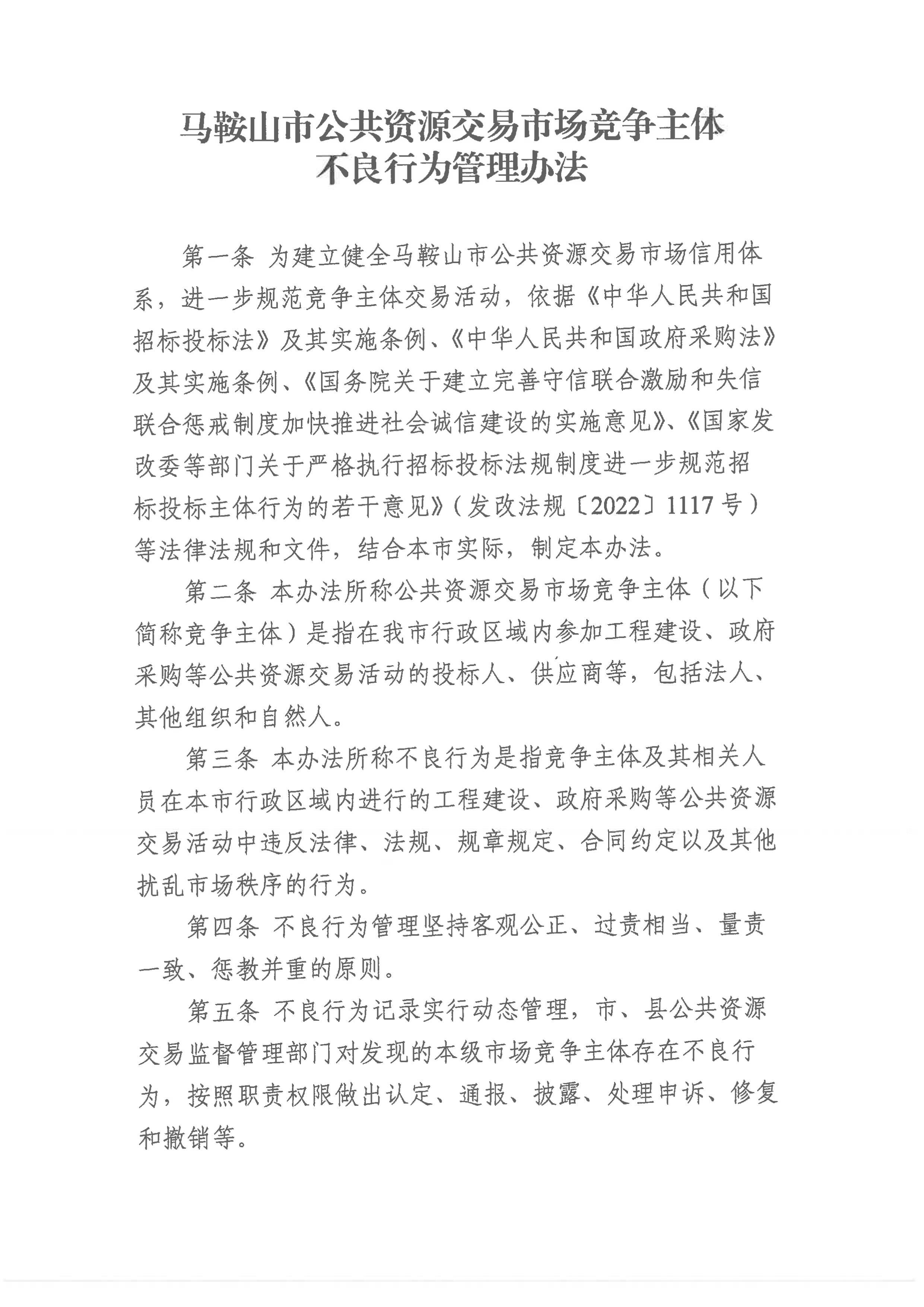 关于印发《马鞍山市公共资源交易市场竞争主体不良行为管理办法》的通知