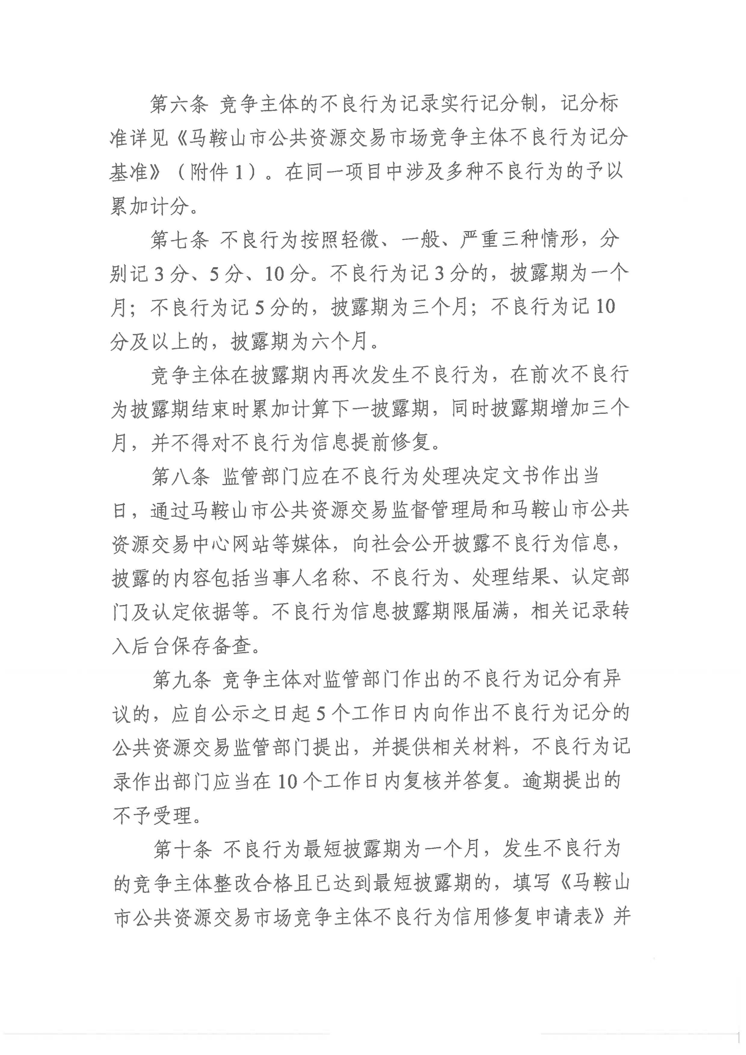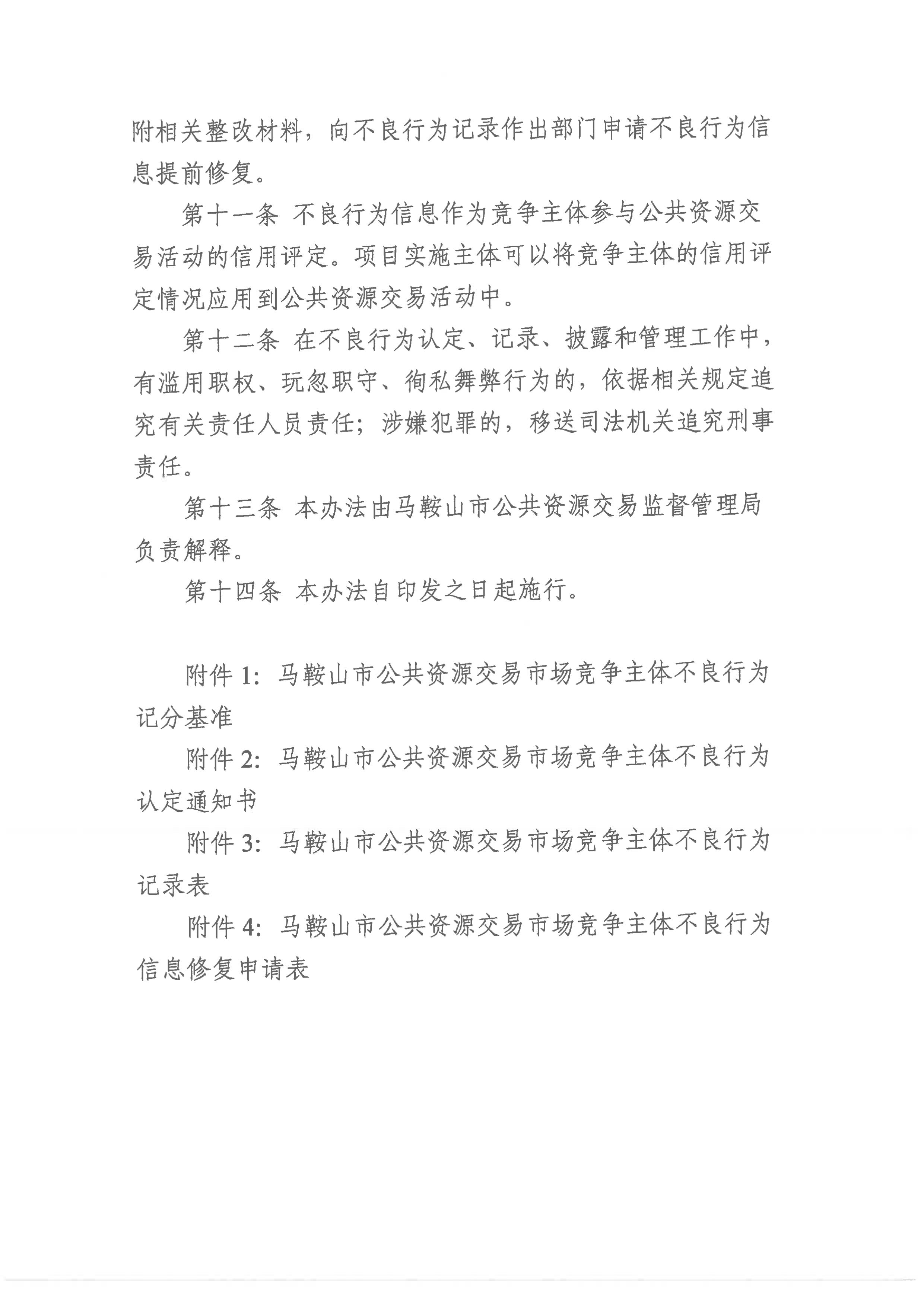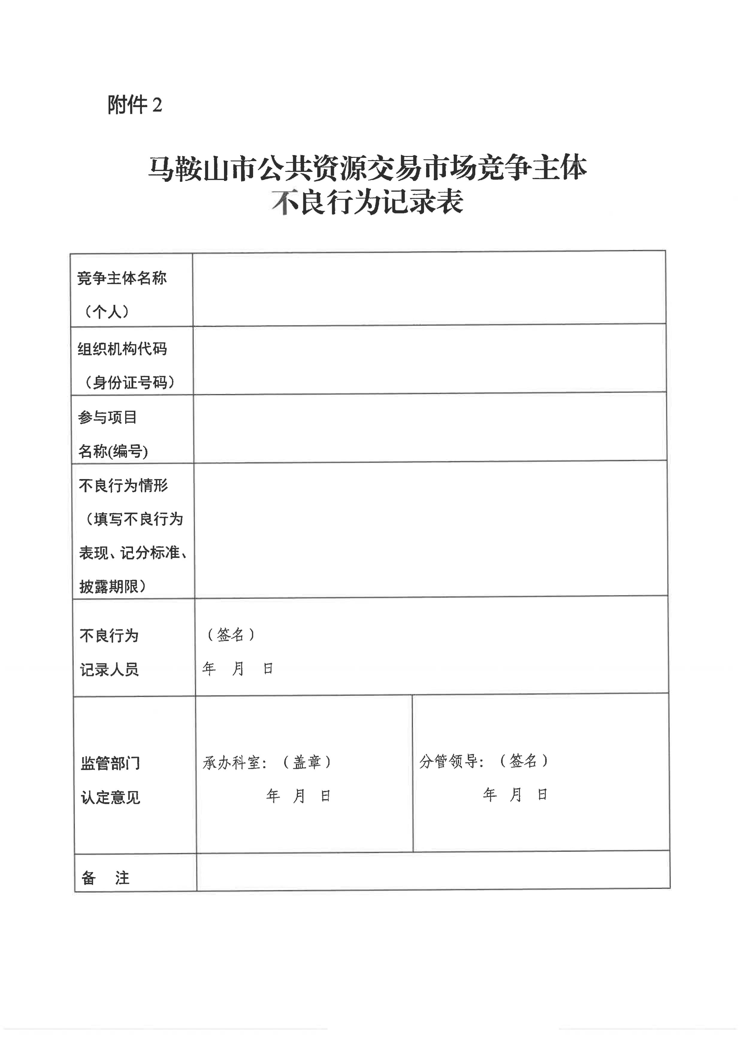 关于印发《马鞍山市公共资源交易市场竞争主体不良行为管理办法》的通知